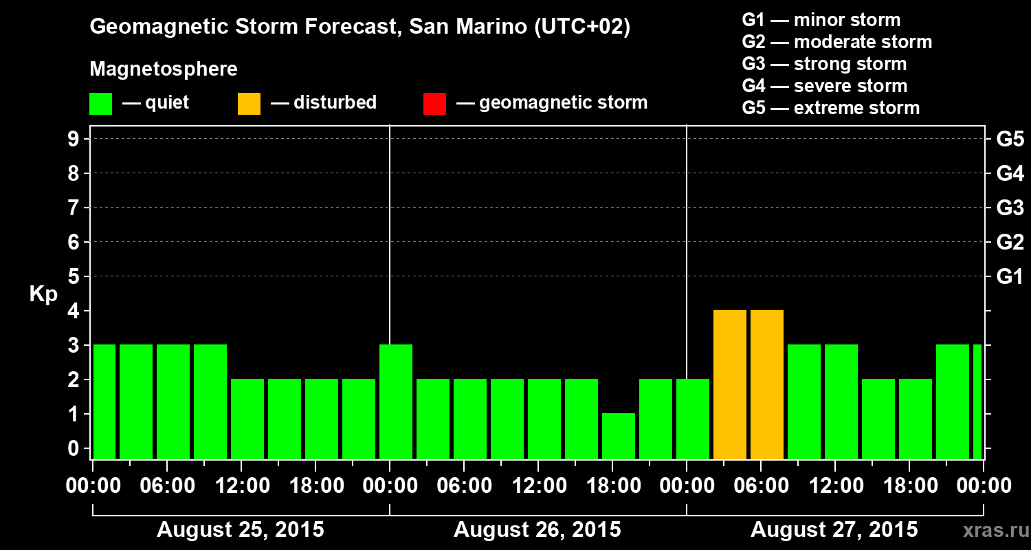 Geomagnetic storm forecast in San Marino for Aug 25, 2015