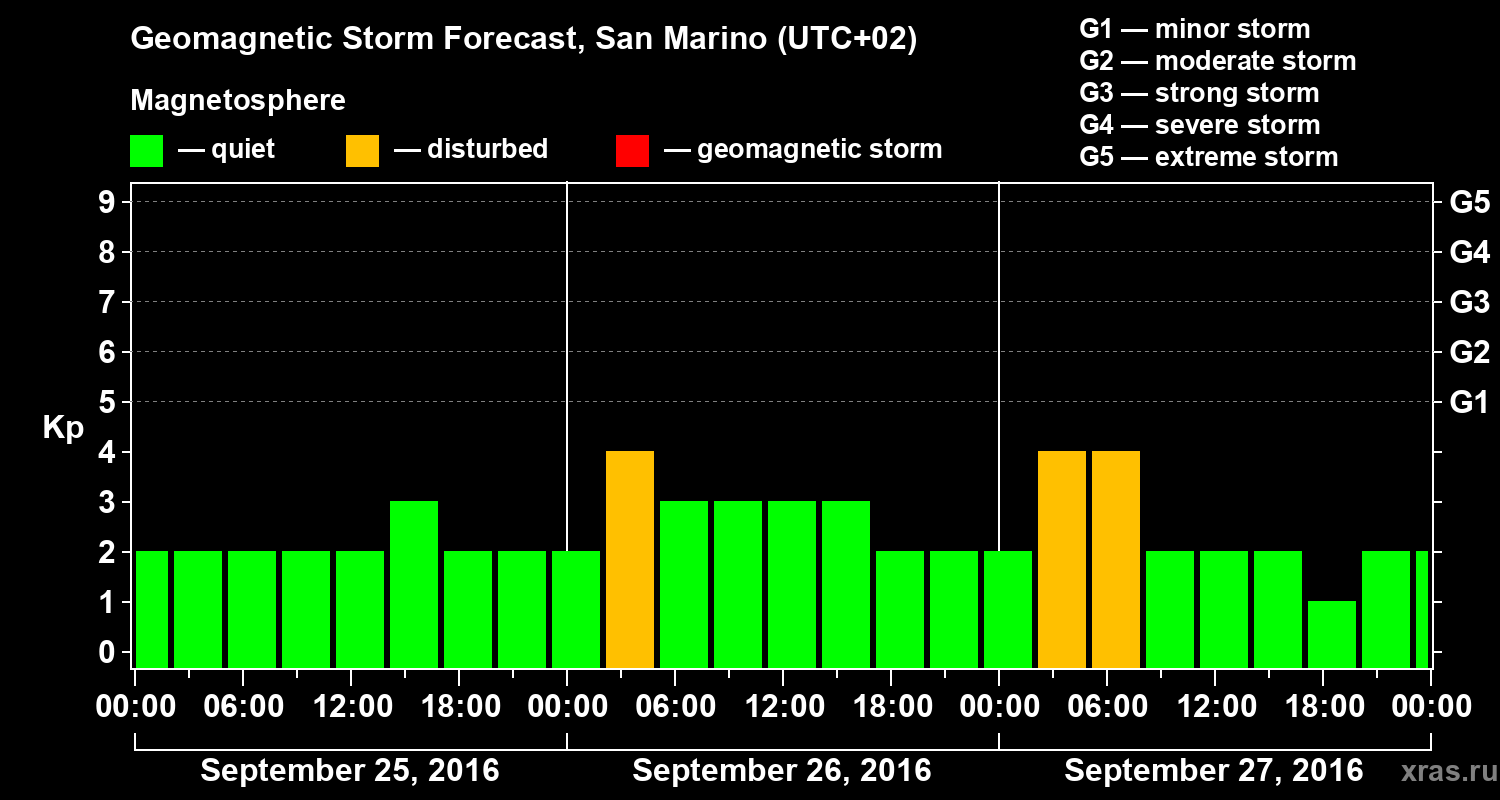Geomagnetic storm forecast in San Marino for Sep 25, 2016