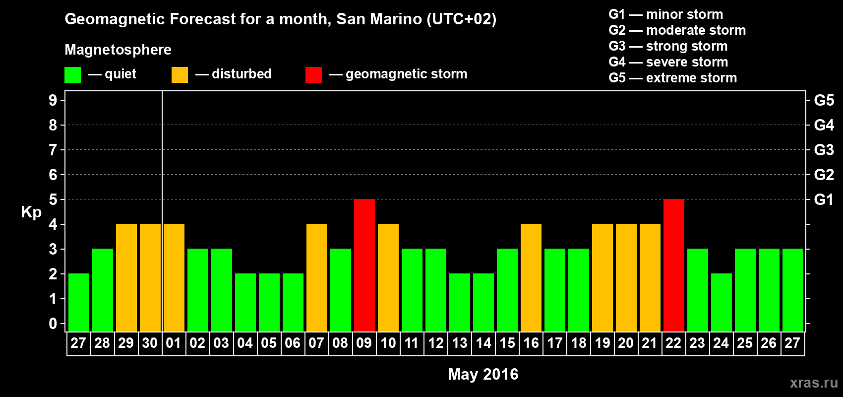 Geomagnetic storm forecast in San Marino for Apr 27, 2016