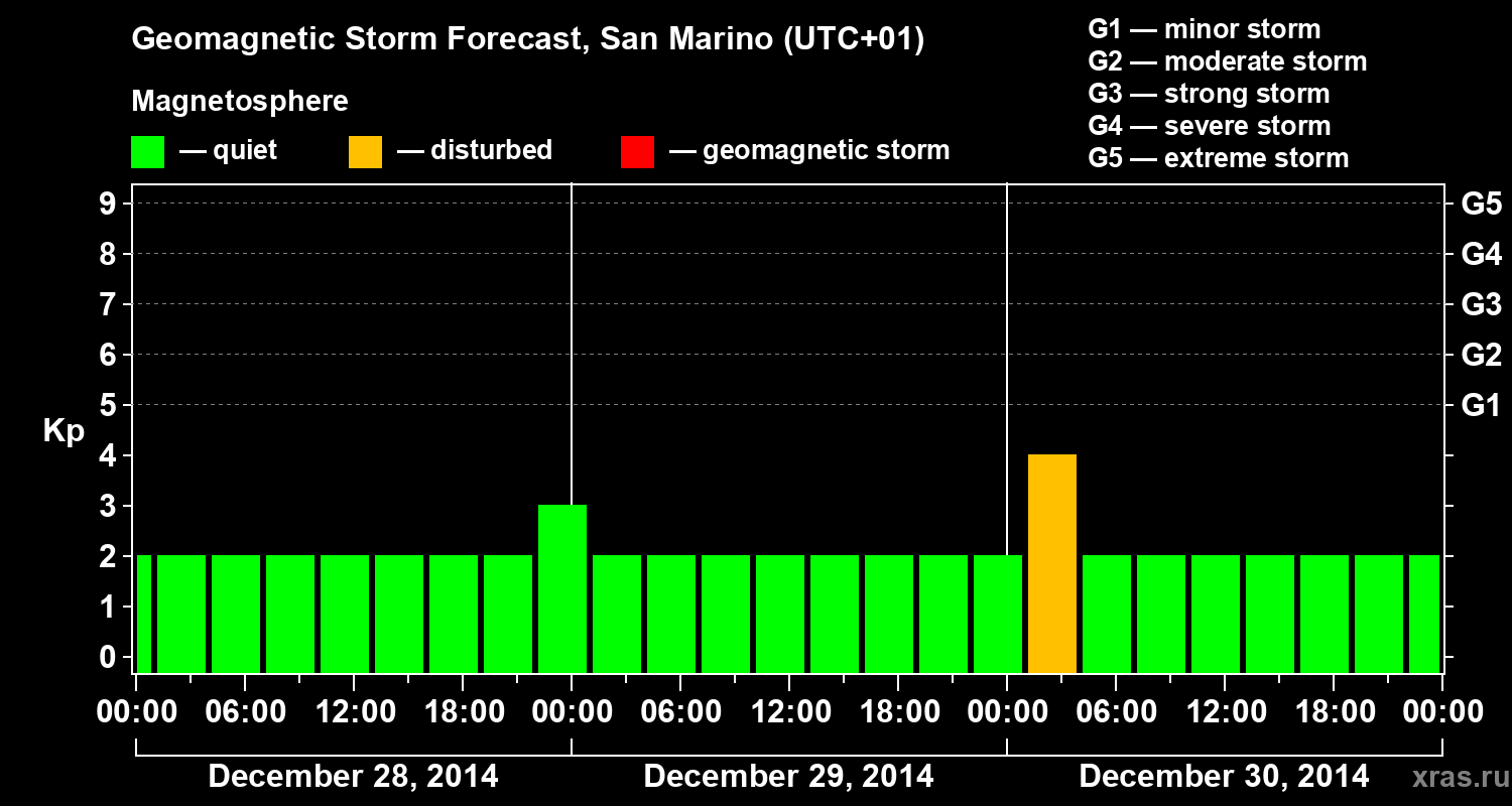 Geomagnetic storm forecast in San Marino for Dec 28, 2014