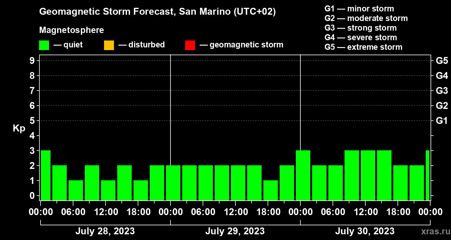 Geomagnetic storm forecast in San Marino for Jul 28, 2023