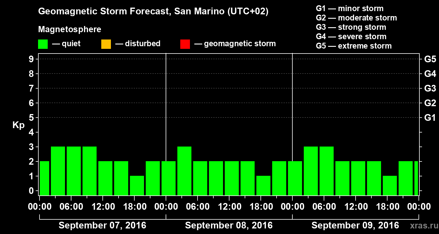 Geomagnetic storm forecast in San Marino for Sep 07, 2016