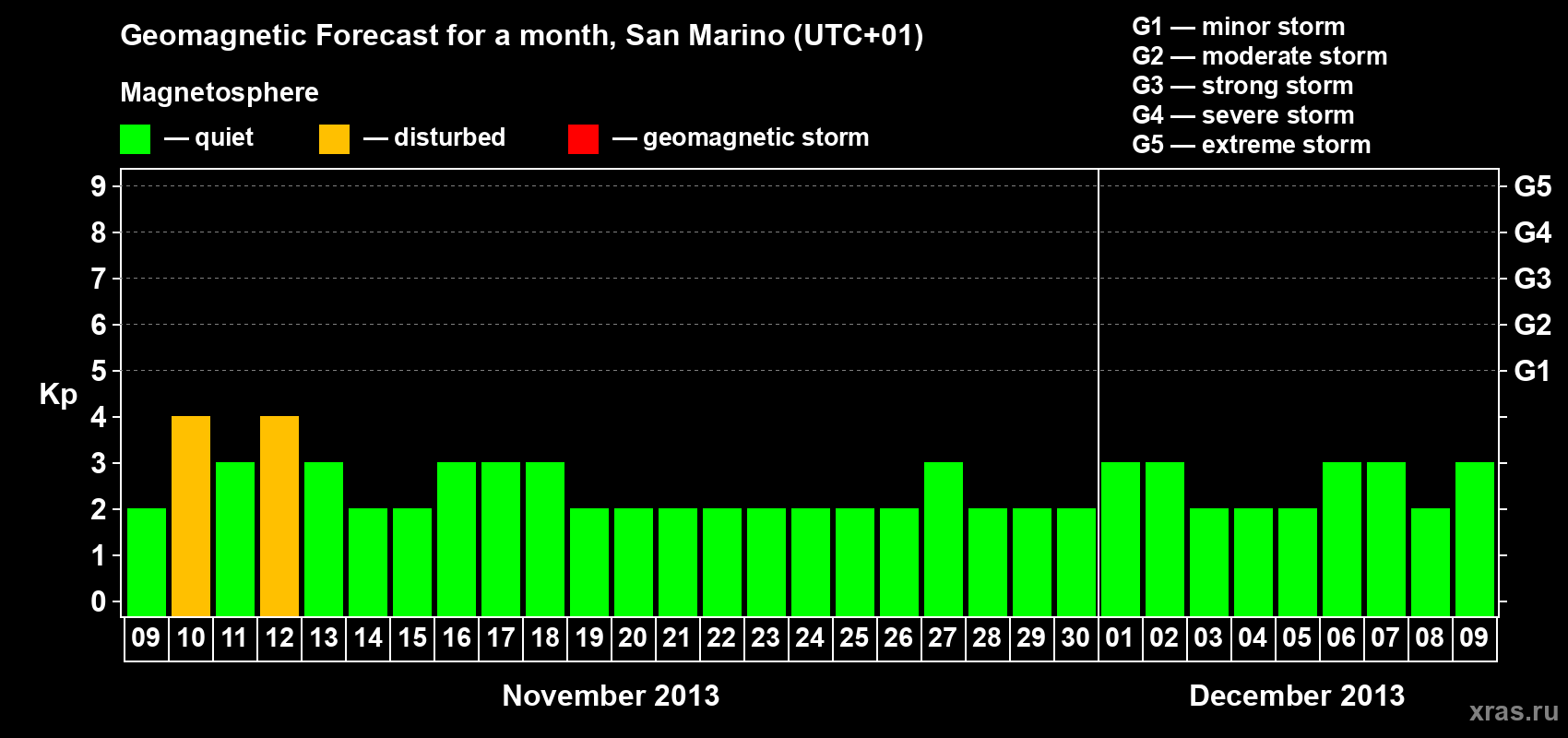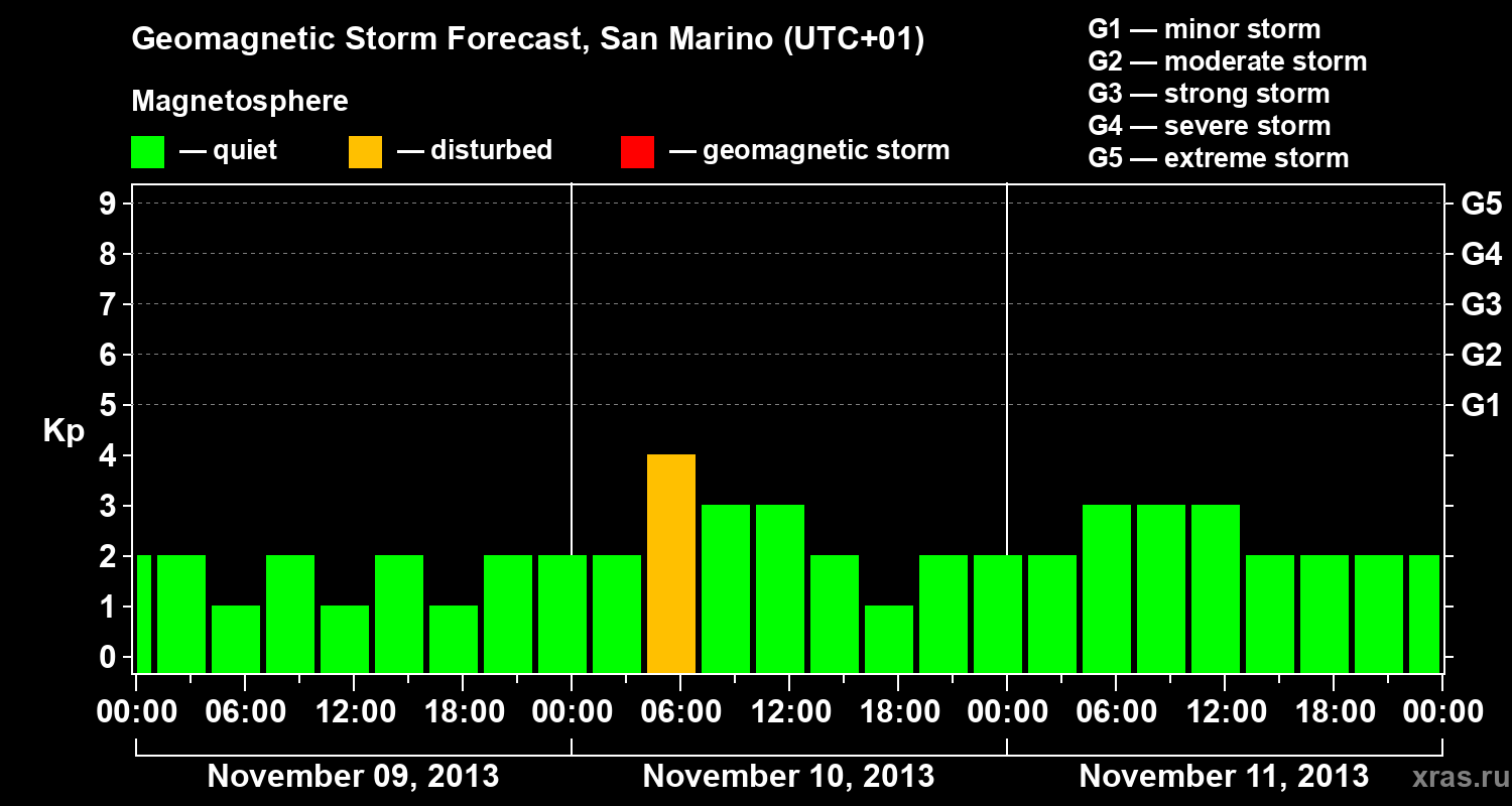 Geomagnetic storm forecast in San Marino for Nov 09, 2013