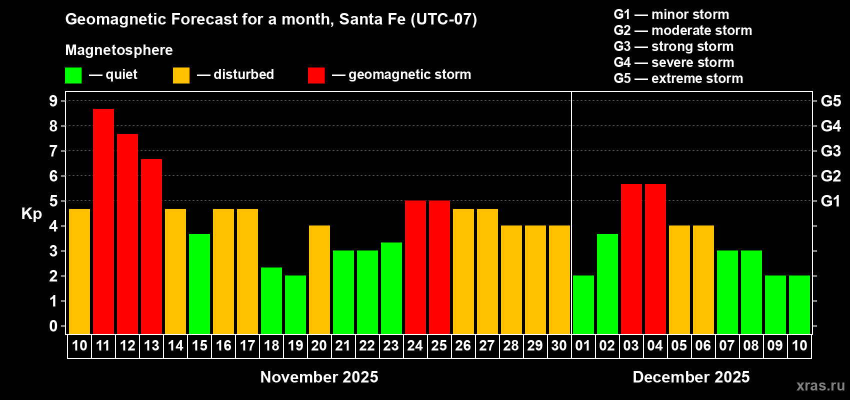 Geomagnetic storm forecast in Santa Fe for Nov 10, 2025