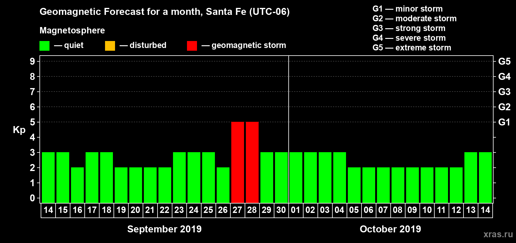 Geomagnetic storm forecast in Santa Fe for Sep 14, 2019