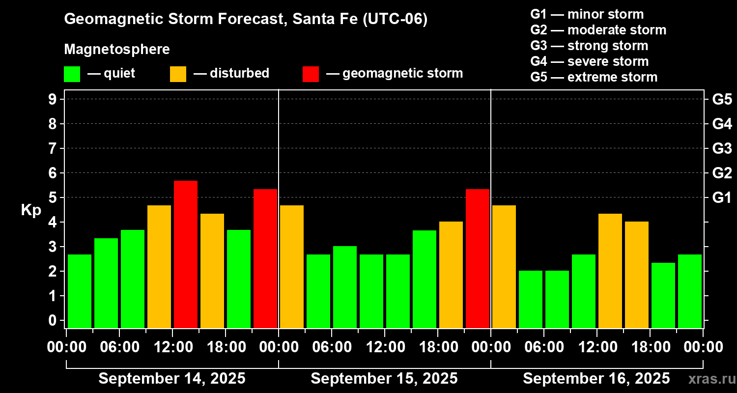 Geomagnetic storm forecast in Santa Fe for Sep 14, 2025