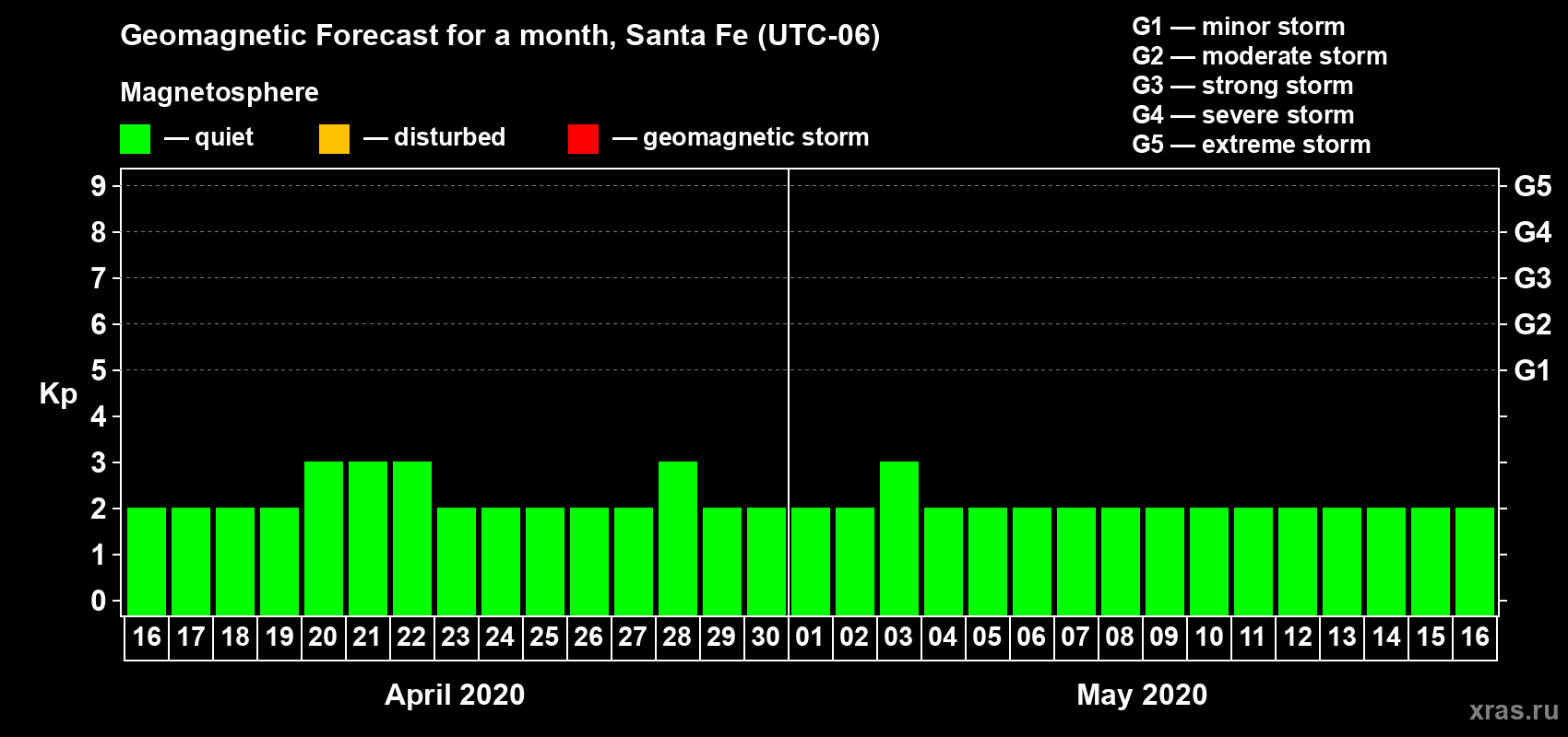 Geomagnetic storm forecast in Santa Fe for Apr 16, 2020