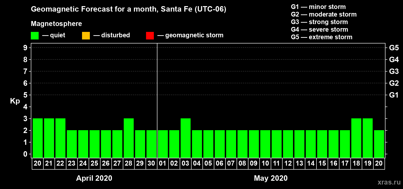 Geomagnetic storm forecast in Santa Fe for Apr 20, 2020