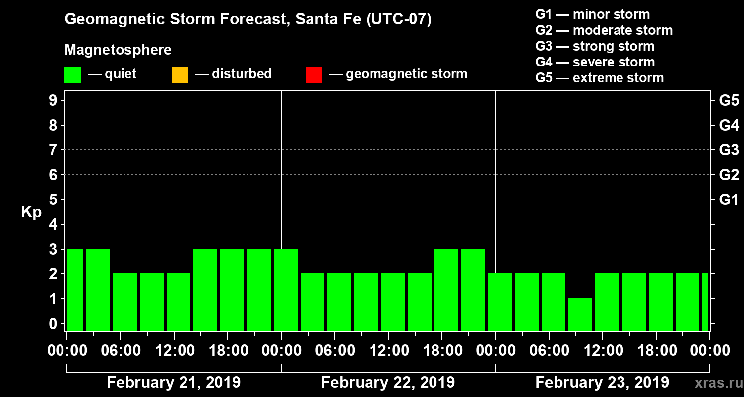 Geomagnetic storm forecast in Santa Fe for Feb 21, 2019