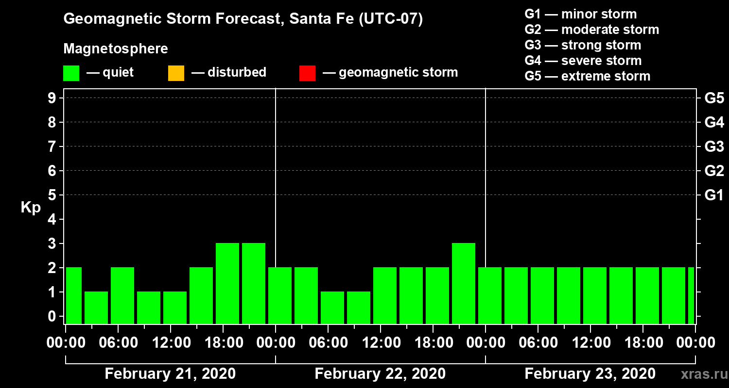 Geomagnetic storm forecast in Santa Fe for Feb 21, 2020