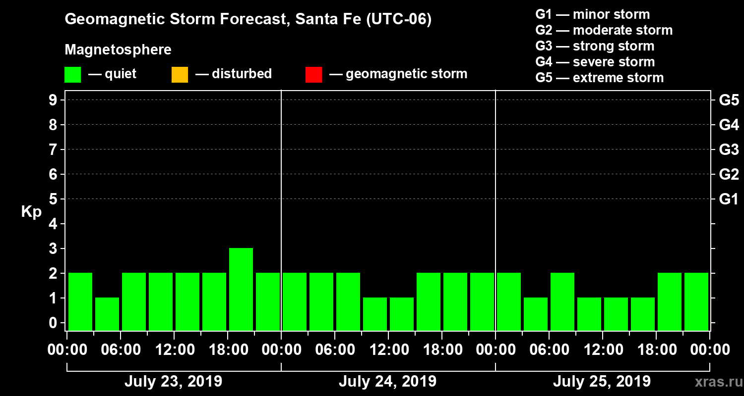 Geomagnetic storm forecast in Santa Fe for Jul 23, 2019