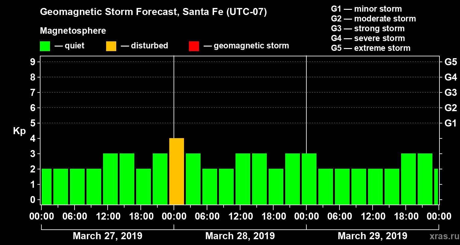 Geomagnetic storm forecast in Santa Fe for Mar 27, 2019