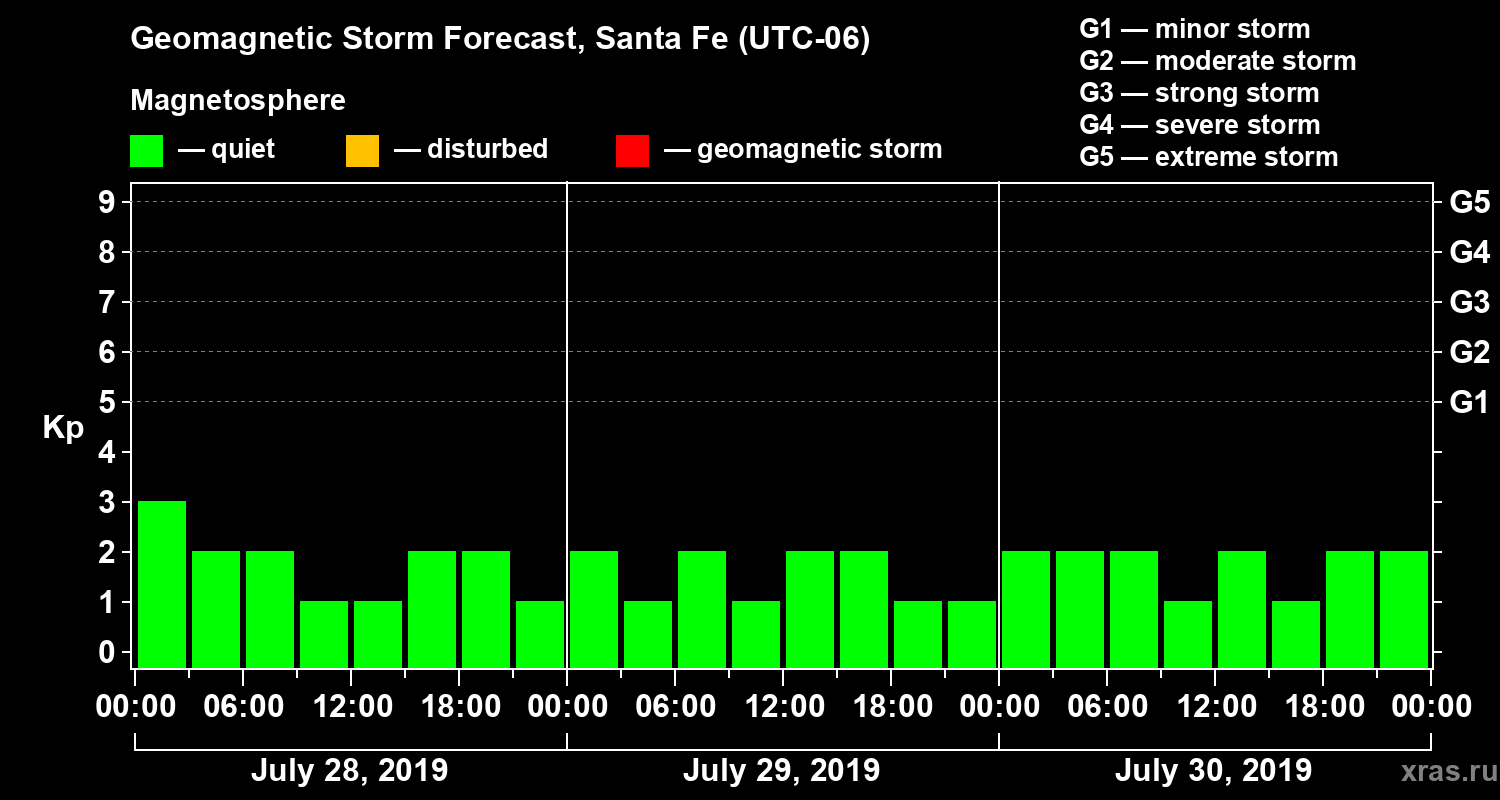 Geomagnetic storm forecast in Santa Fe for Jul 28, 2019