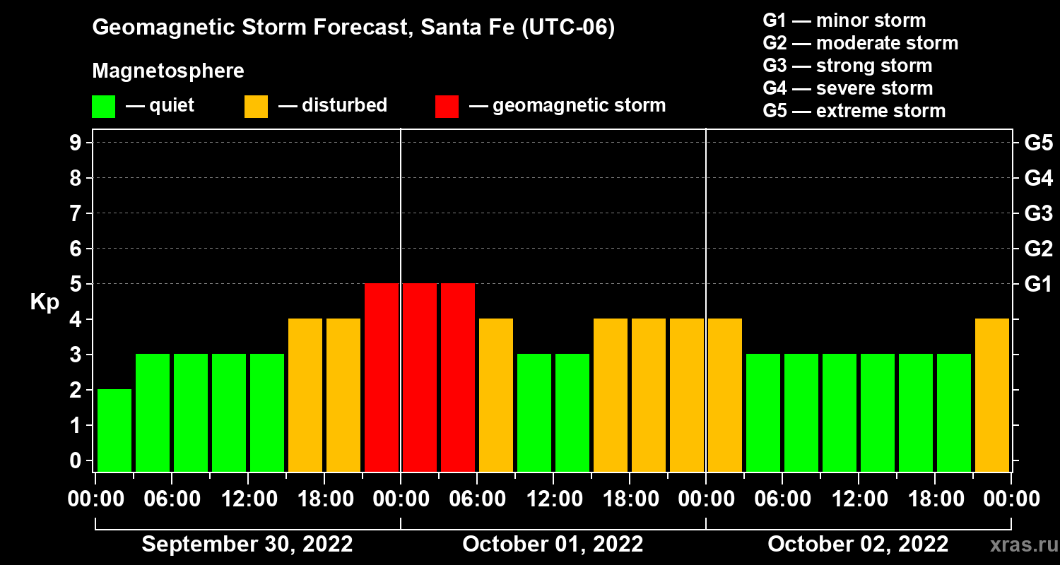 Geomagnetic storm forecast in Santa Fe for Sep 30, 2022