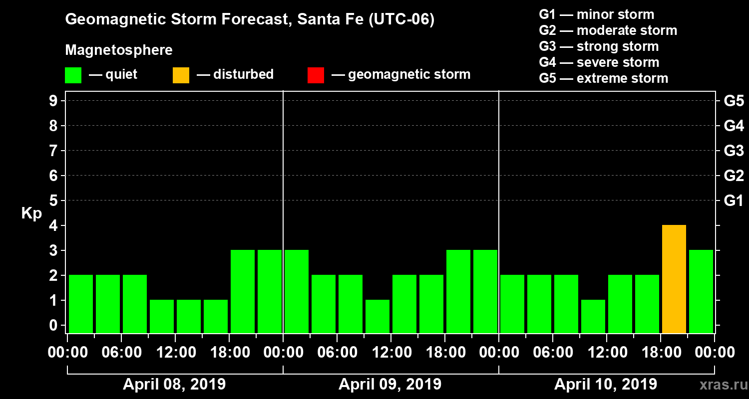Geomagnetic storm forecast in Santa Fe for Apr 08, 2019