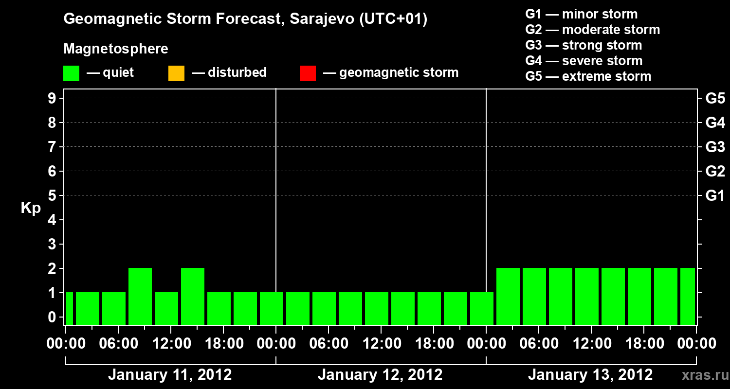 Geomagnetic storm forecast in Sarajevo for Jan 11, 2012