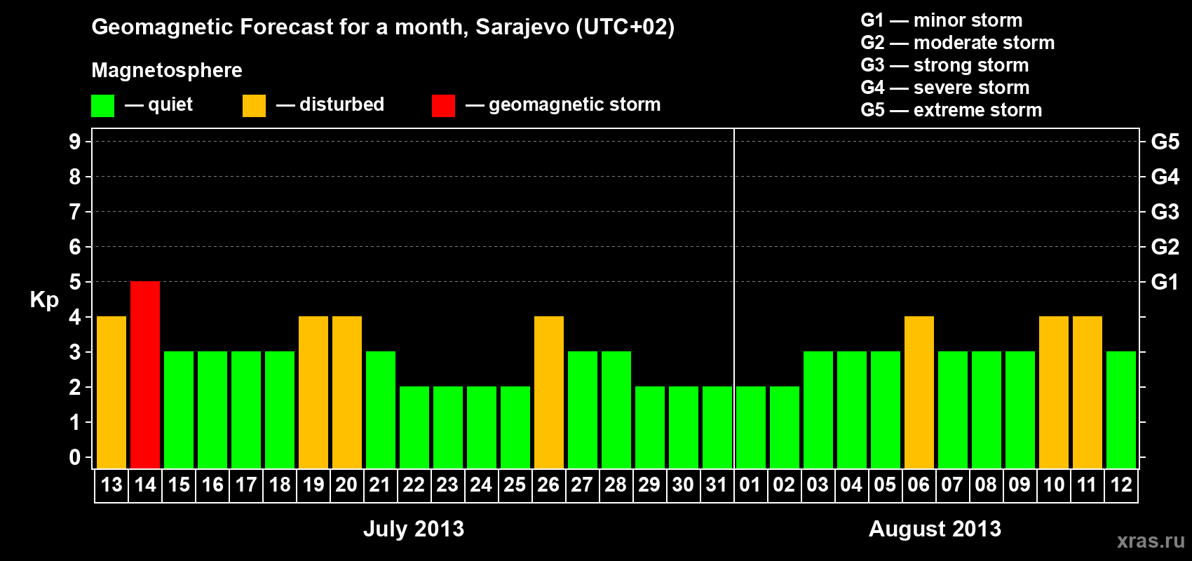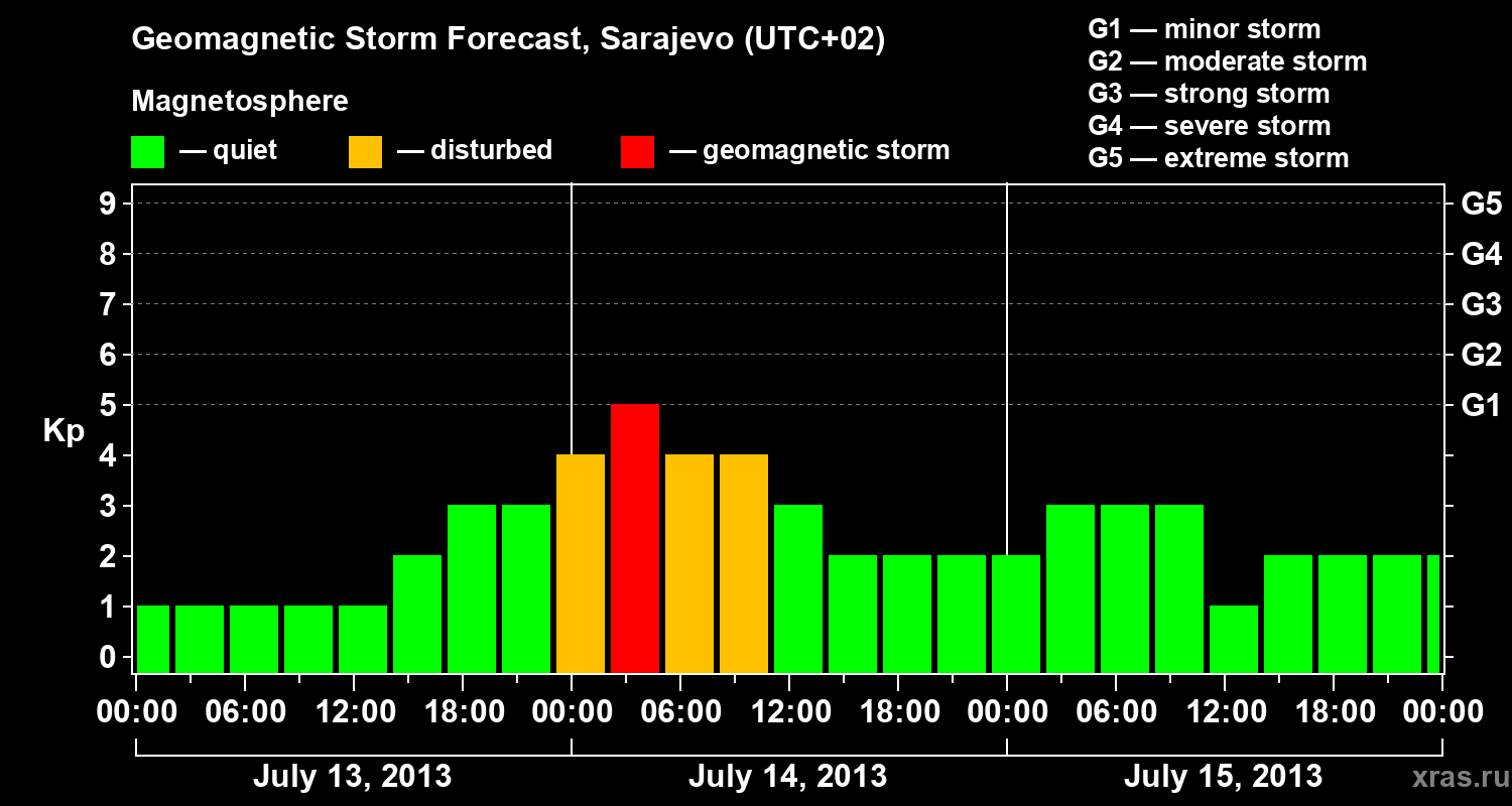 Geomagnetic storm forecast in Sarajevo for Jul 13, 2013