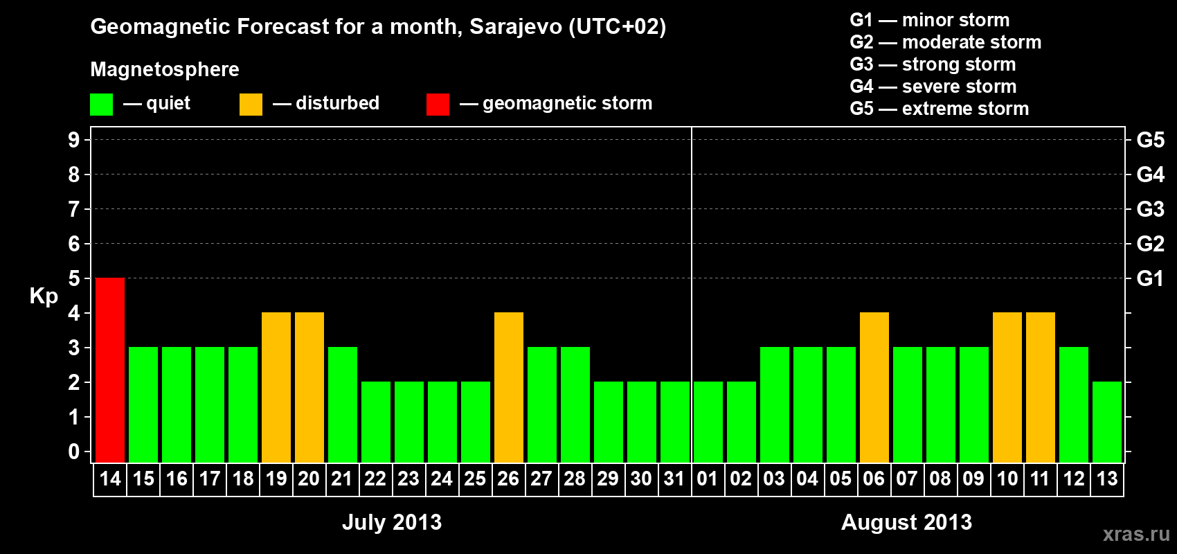 Geomagnetic storm forecast in Sarajevo for Jul 14, 2013