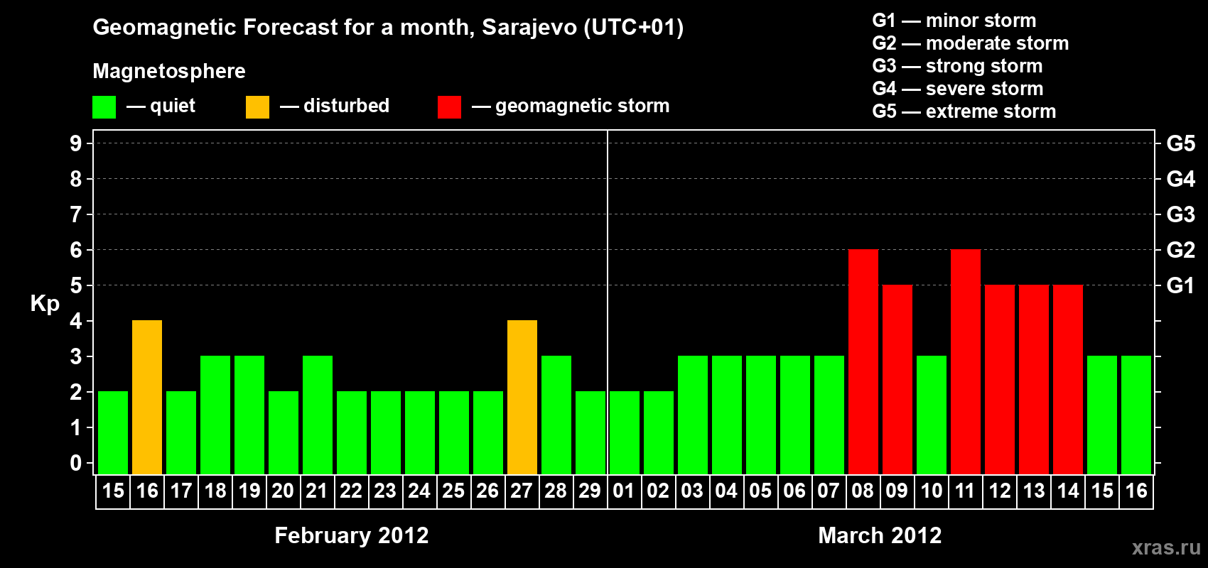 Geomagnetic storm forecast in Sarajevo for Feb 15, 2012
