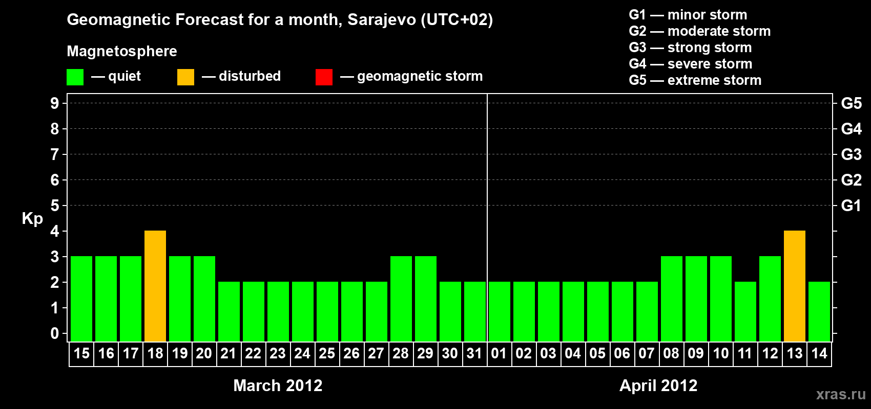 Geomagnetic storm forecast in Sarajevo for Mar 15, 2012