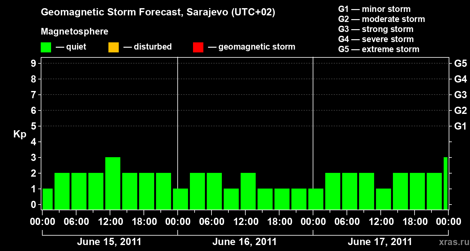 Geomagnetic storm forecast in Sarajevo for Jun 15, 2011