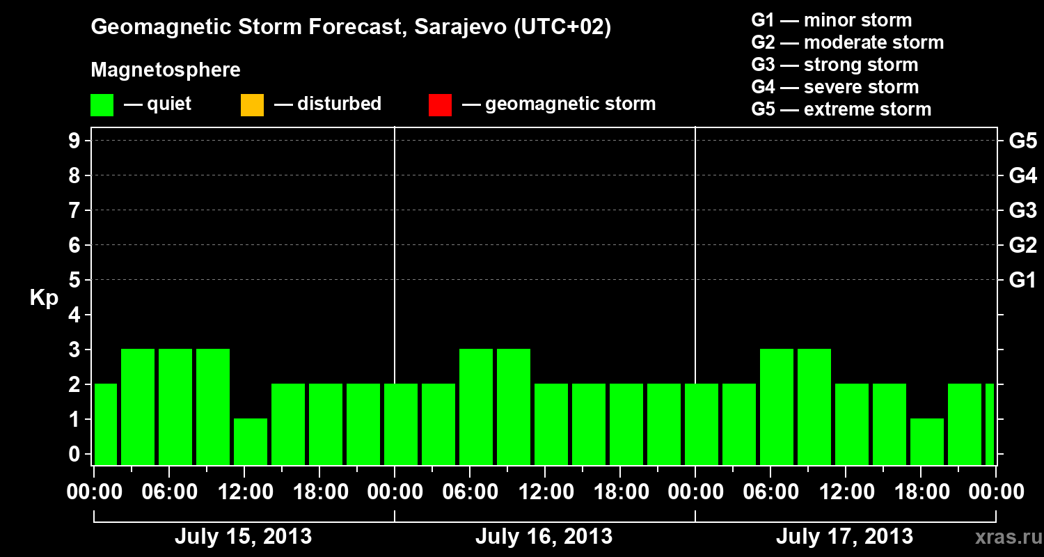 Geomagnetic storm forecast in Sarajevo for Jul 15, 2013