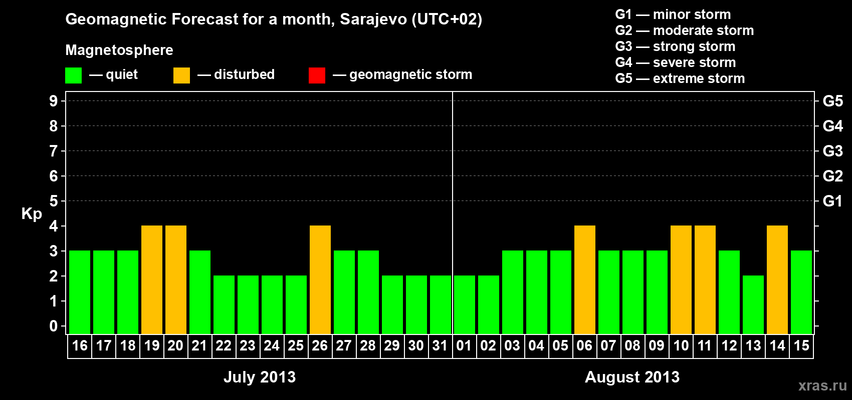 Geomagnetic storm forecast in Sarajevo for Jul 16, 2013