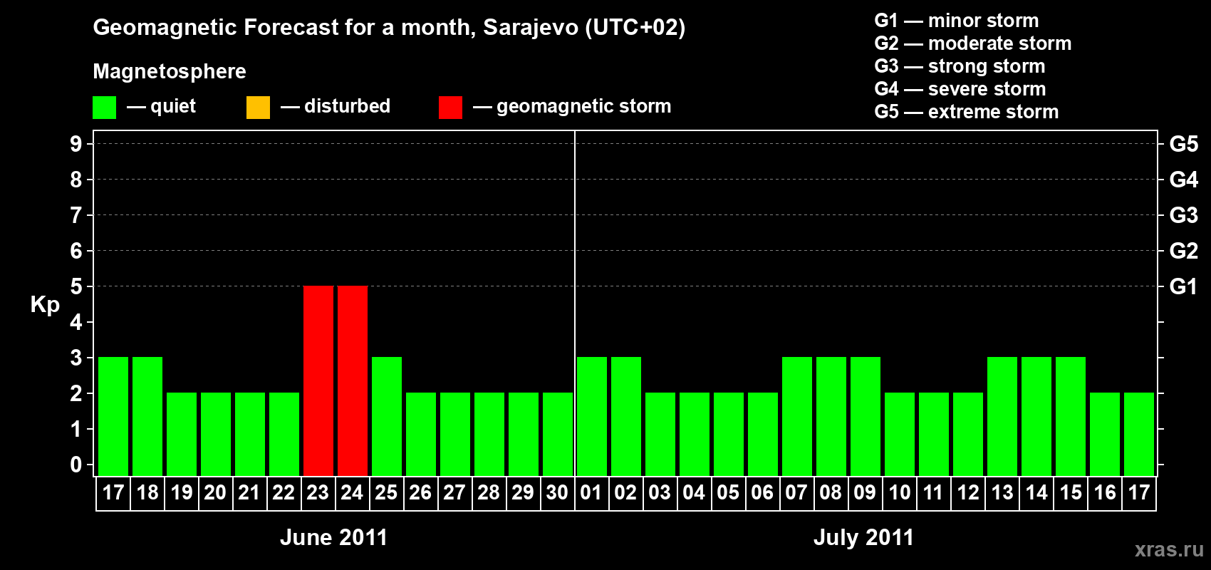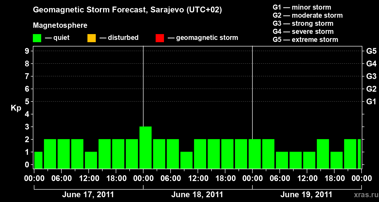 Geomagnetic storm forecast in Sarajevo for Jun 17, 2011