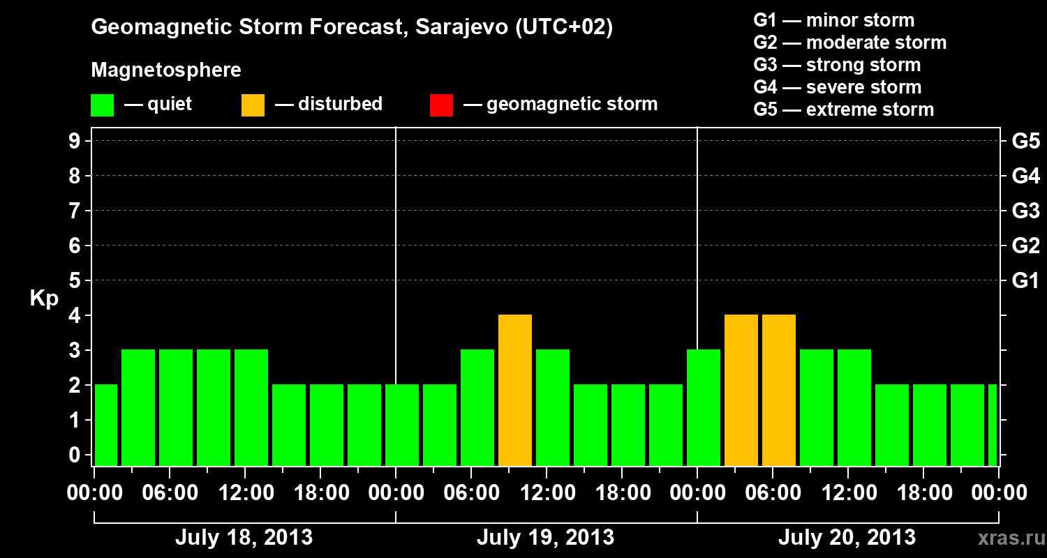 Geomagnetic storm forecast in Sarajevo for Jul 18, 2013