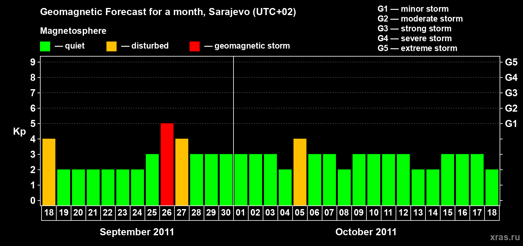 Geomagnetic storm forecast in Sarajevo for Sep 18, 2011