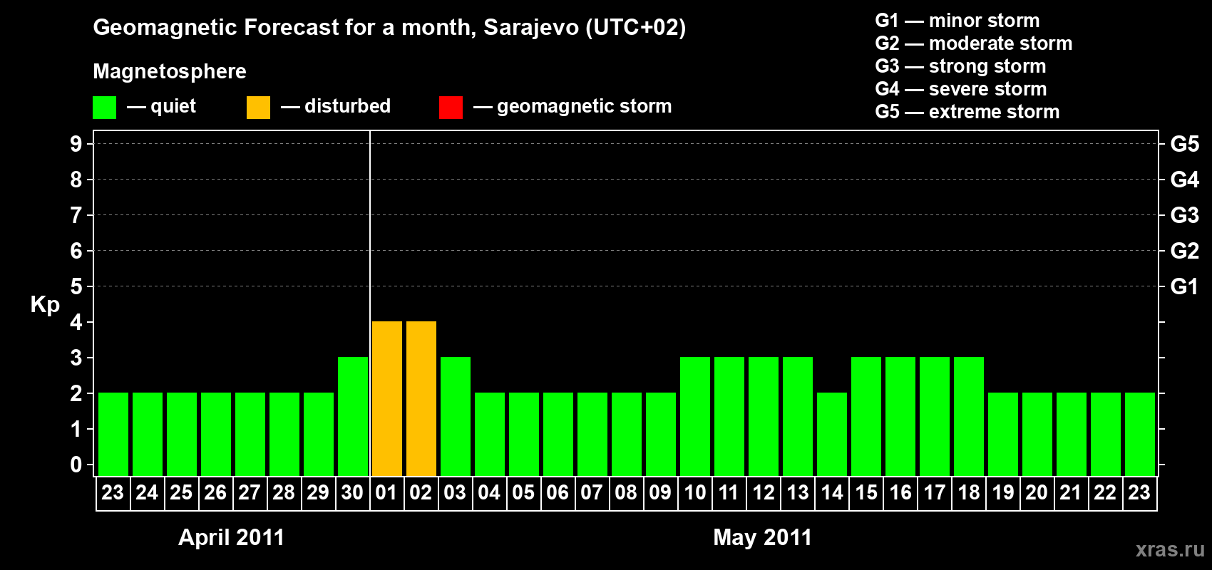 Geomagnetic storm forecast in Sarajevo for Apr 23, 2011
