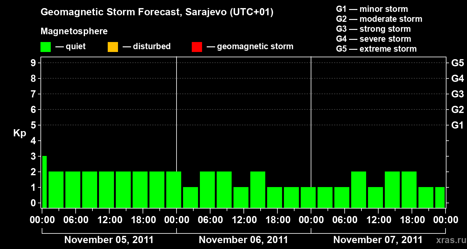 Geomagnetic storm forecast in Sarajevo for Nov 05, 2011