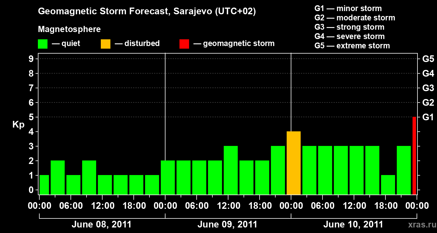 Geomagnetic storm forecast in Sarajevo for Jun 08, 2011