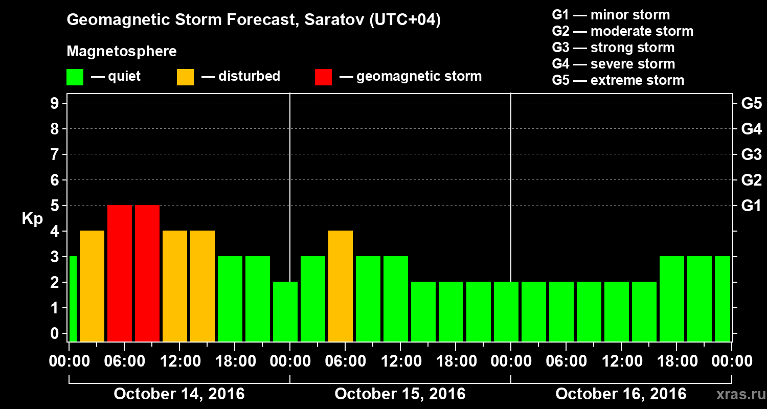 Geomagnetic storm forecast in Saratov for Oct 14, 2016