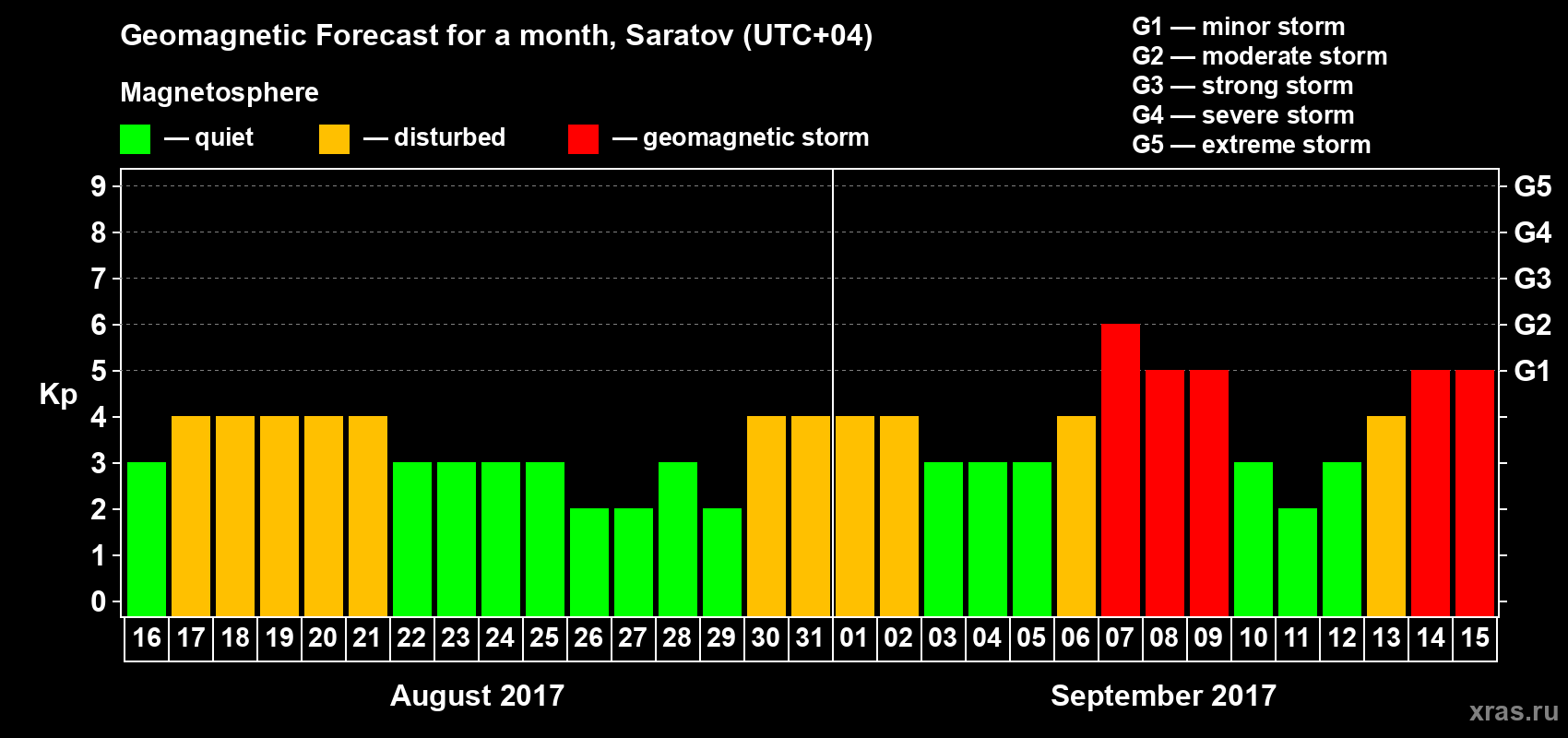 Geomagnetic storm forecast in Saratov for Aug 16, 2017