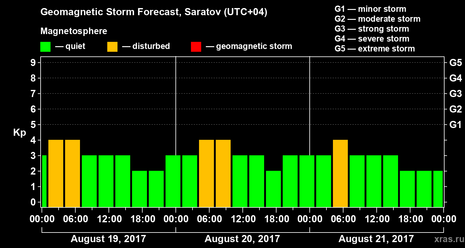 Geomagnetic storm forecast in Saratov for Aug 19, 2017