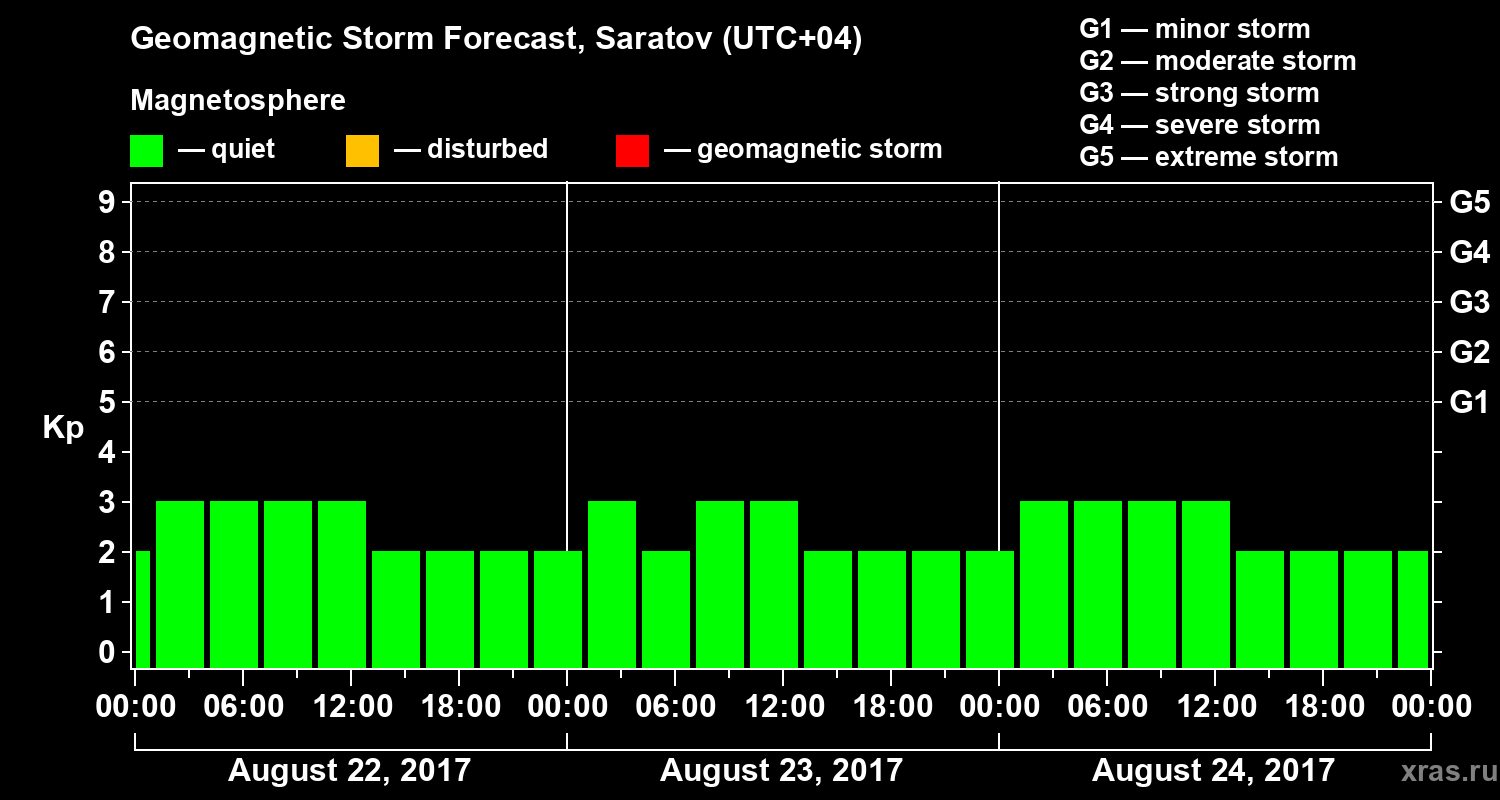 Geomagnetic activity forecast in Saratov — Aug 22, 2017