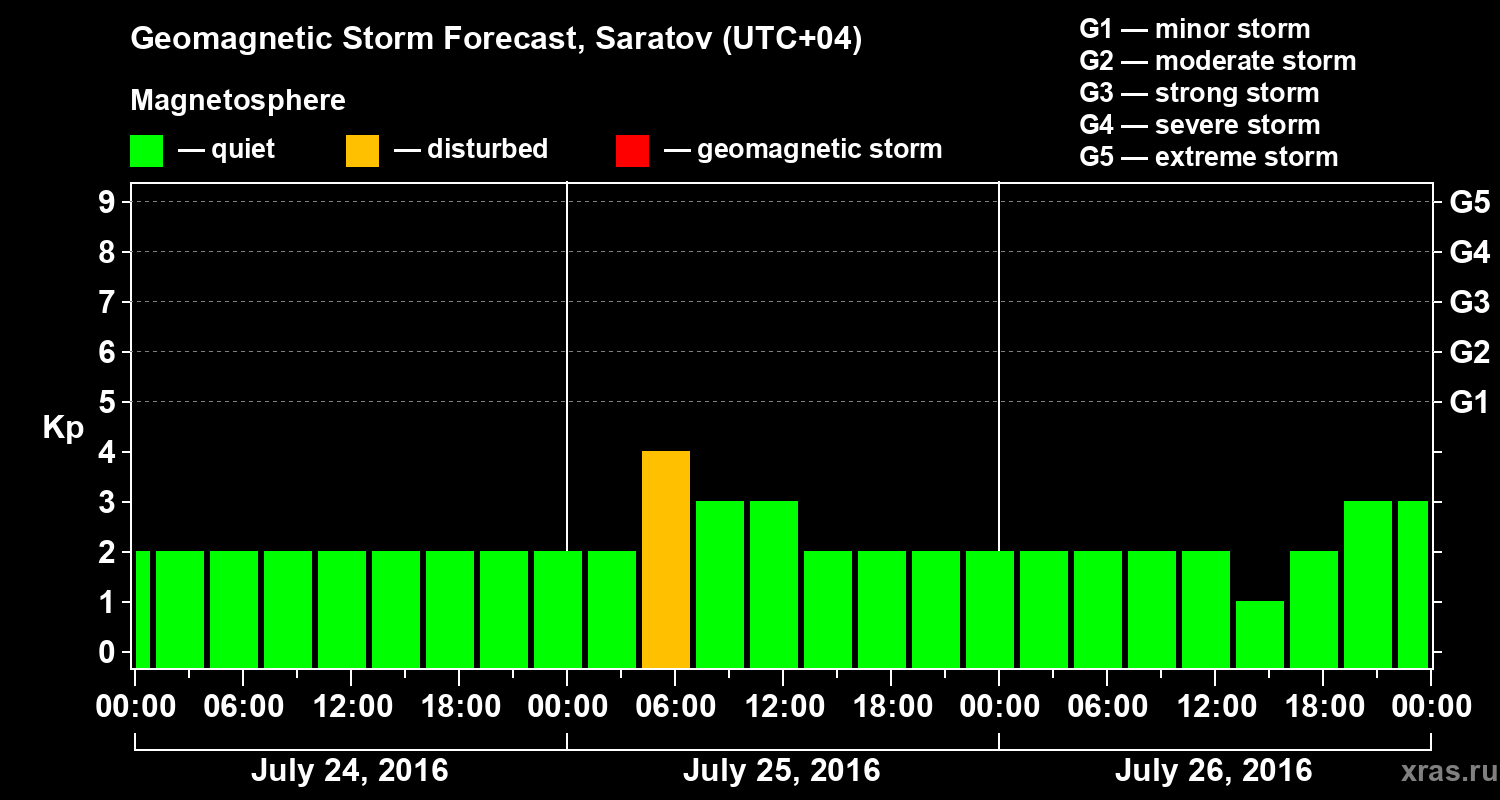 Geomagnetic storm forecast in Saratov for Jul 24, 2016