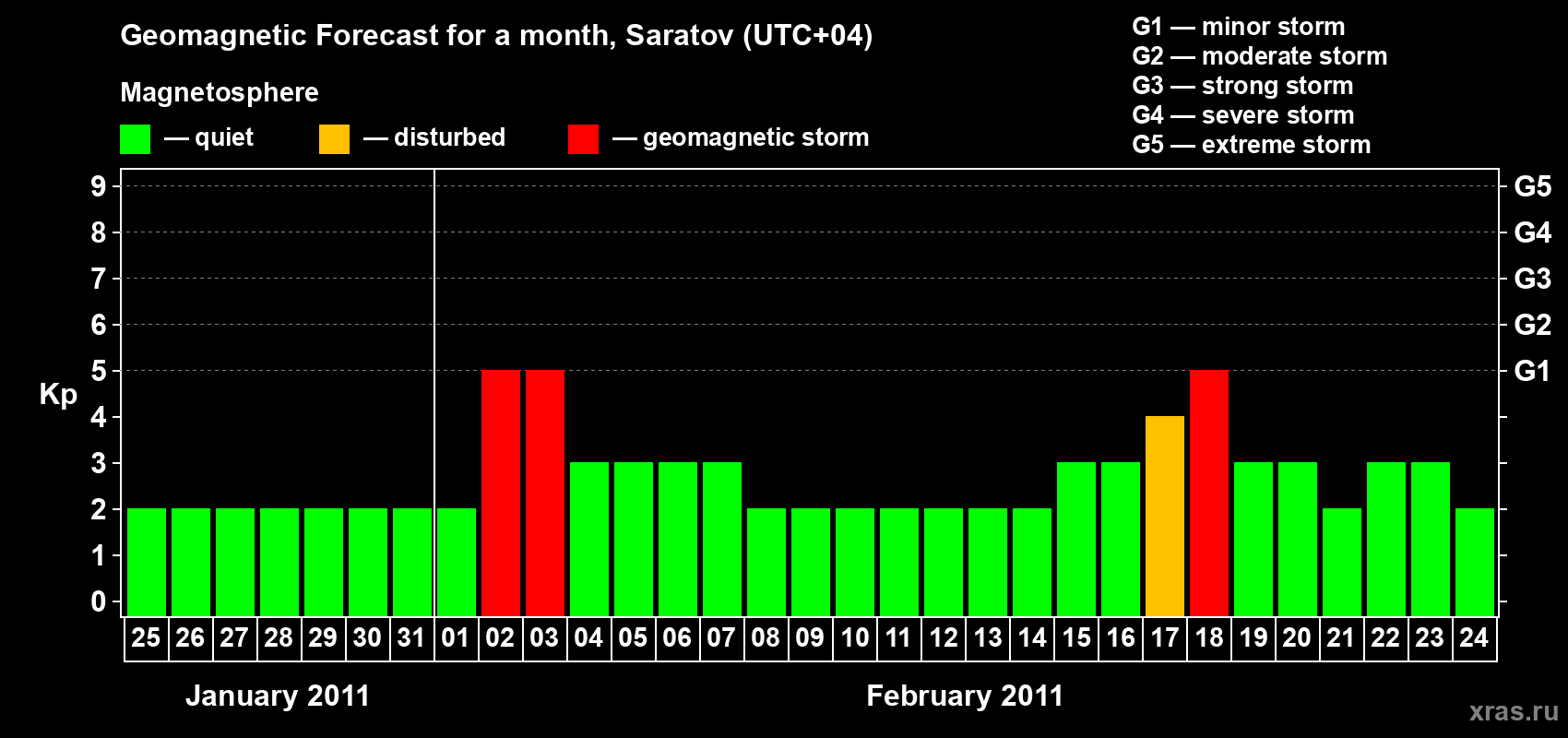 Geomagnetic storm forecast in Saratov for Jan 25, 2011