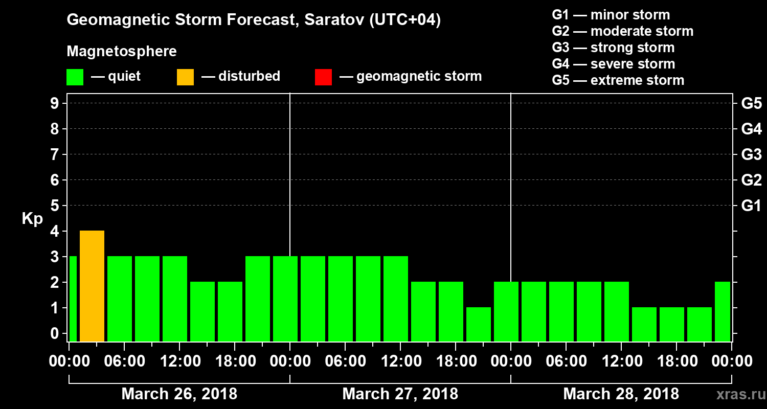 Geomagnetic activity forecast in Saratov — Mar 26, 2018