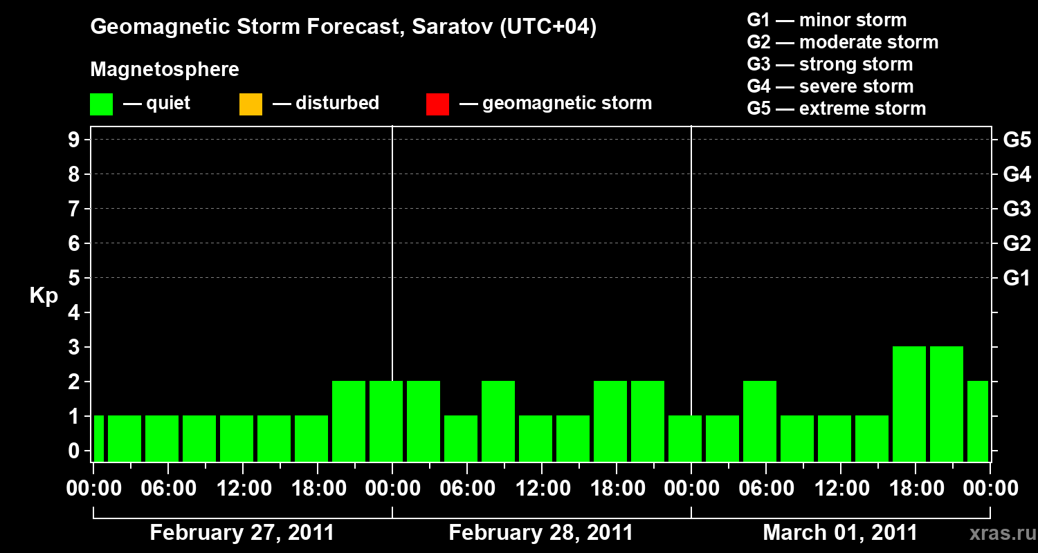 Geomagnetic storm forecast in Saratov for Feb 27, 2011