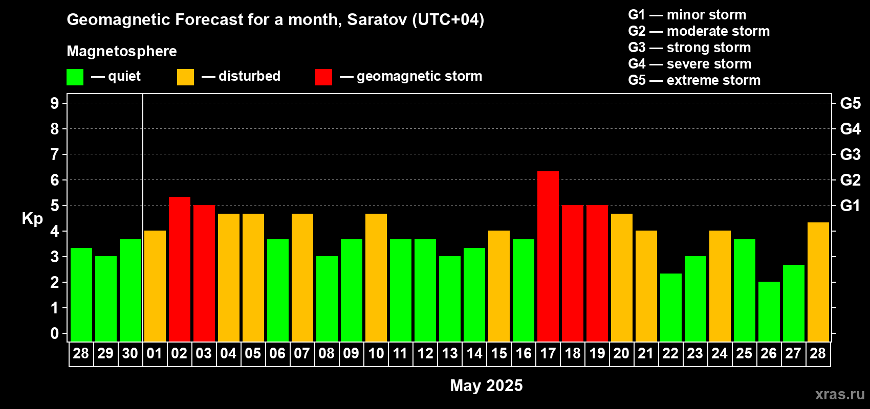 Geomagnetic storm forecast in Saratov for Apr 28, 2025
