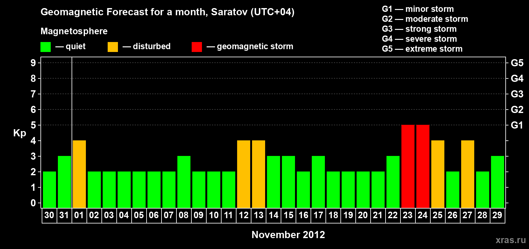 Geomagnetic activity forecast in Saratov — Oct 30, 2012