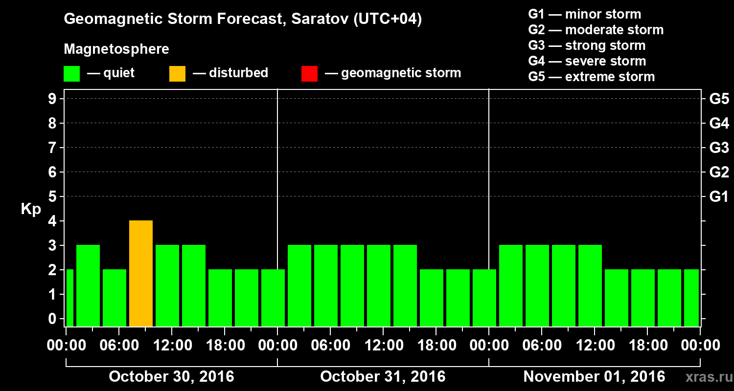 Geomagnetic activity forecast in Saratov — Oct 30, 2016