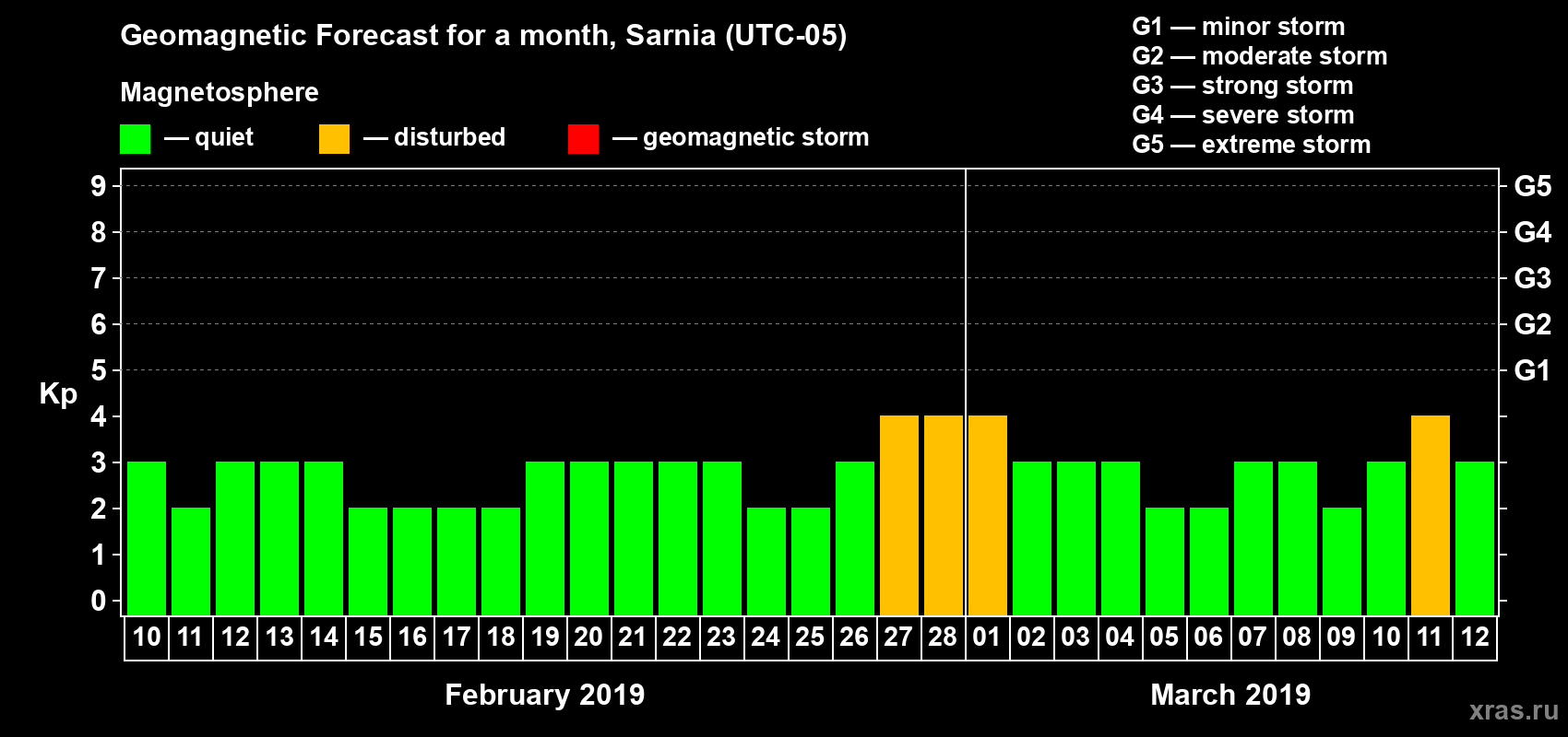 Geomagnetic storm forecast in Sarnia for Feb 10, 2019