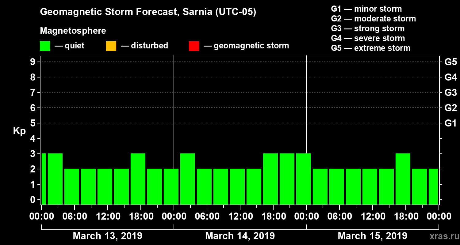 Geomagnetic storm forecast in Sarnia for Mar 13, 2019