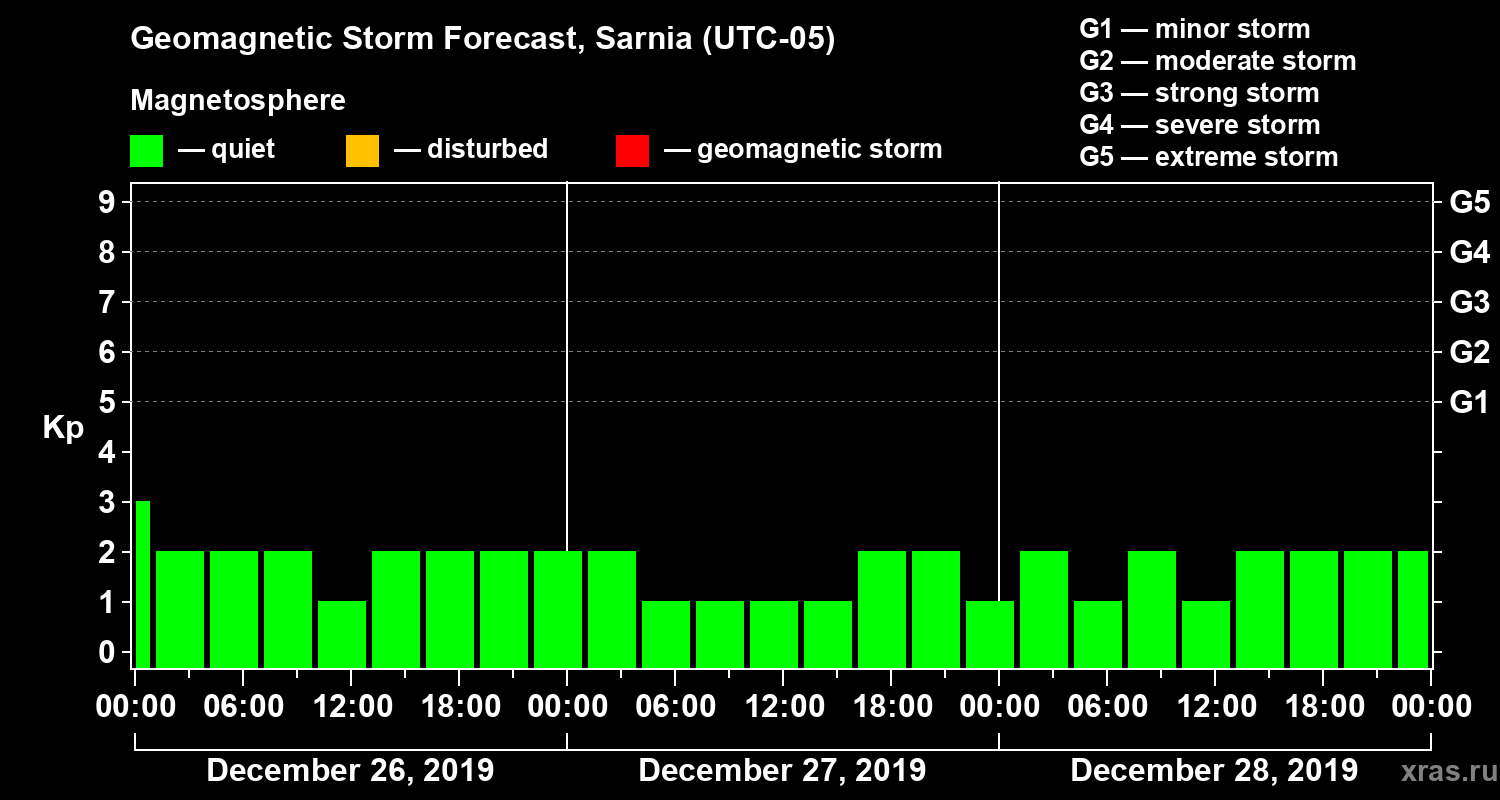 Geomagnetic storm forecast in Sarnia for Dec 26, 2019