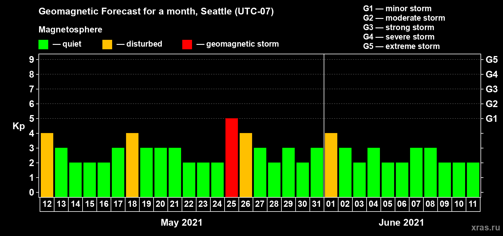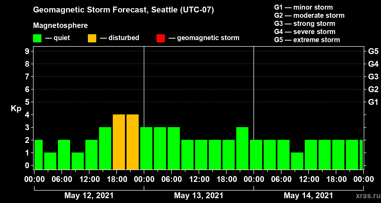 Geomagnetic activity forecast in Seattle — May 12, 2021
