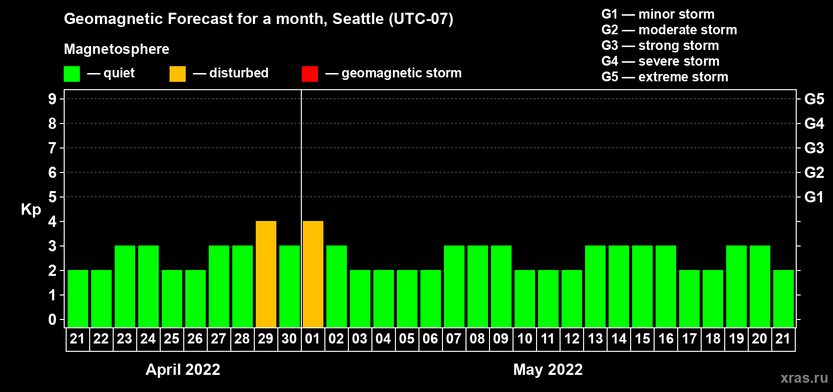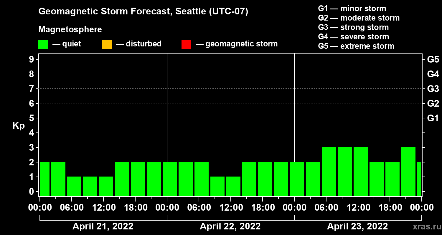 Geomagnetic storm forecast in Seattle for Apr 21, 2022