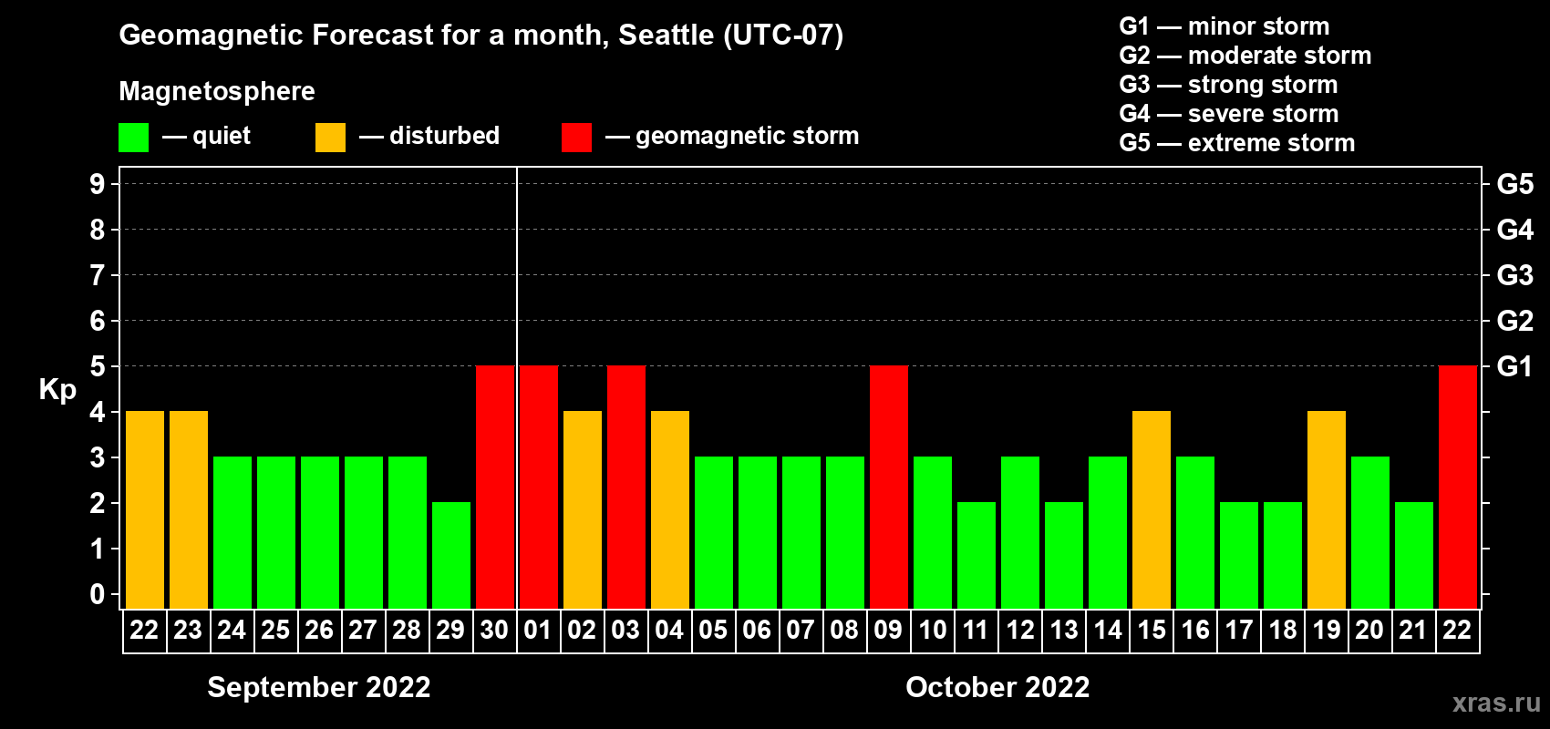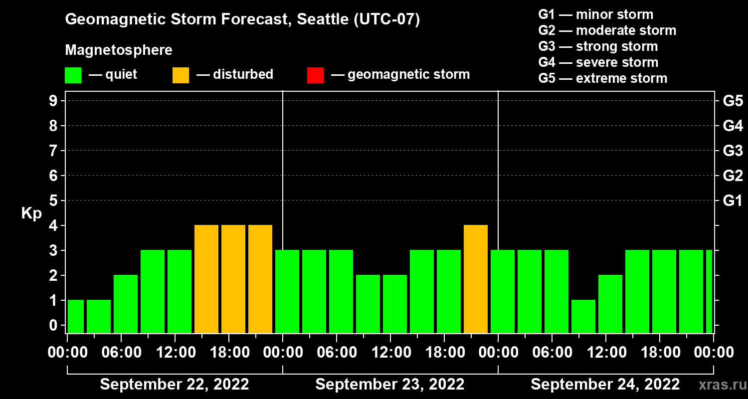 Geomagnetic storm forecast in Seattle for Sep 22, 2022